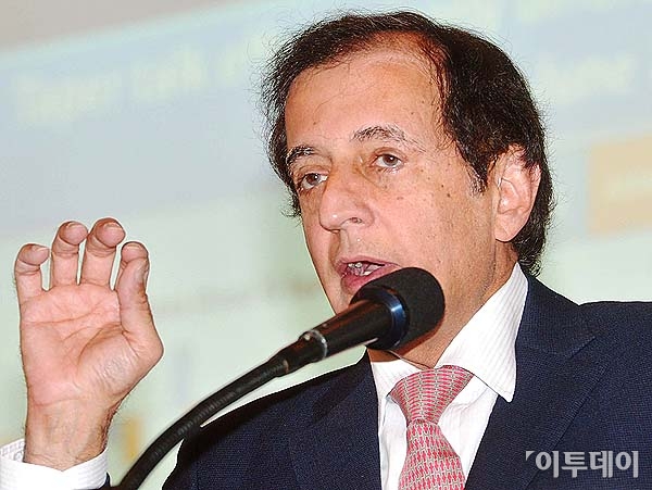 아눕 싱 JP모건 아시아 본부장이 17일 서울 소공동 웨스틴 조선호텔에서 세계경제연구원 주최로 열린 조찬강연에서 ‘다가올 미 연준의 양적완화 종료가 아시아 금융시장에 미칠 영향’에 대해 강연하고 있다. 신태현 기자 holjjak@