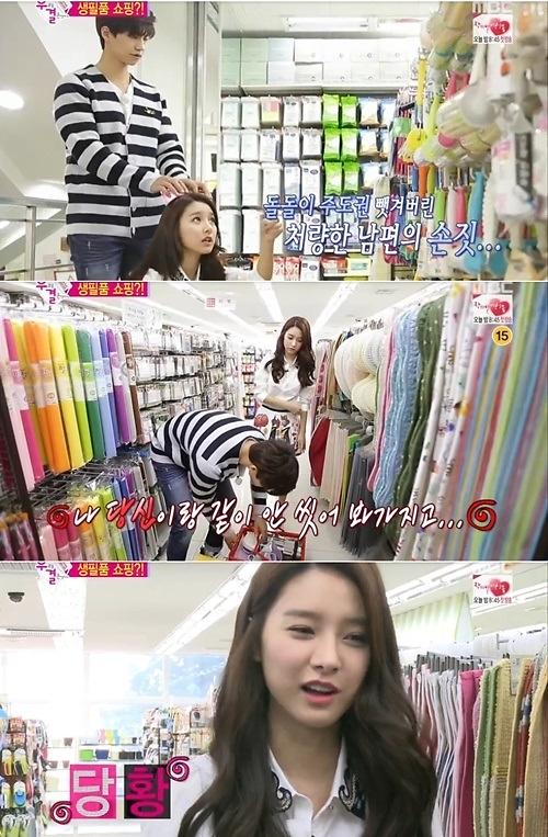 이날 방송된 '우리결혼했어요'에서 김소은이 작은 화장실용 발판을 골랐다. 송재림은 "한 번 씻으면 다 젖겠다"고 손을 저었다.