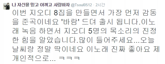 지오디 멤버 김태우는 트위터를 통해 ‘바람’에 대한 자부심을 보였다. 김태우는 ‘바람’ 발표 직전 자신의 트위터에 “이번 지오디 8집을 만들면서 가장 먼저 감동을 준 곡이네요. ‘바람’ 드디어 출시됩니다”라며 “이 노래를 녹음하면서 지오디 5명의 목소리가 가진 진정한 힘을 알았습니다”라고 밝혔다.