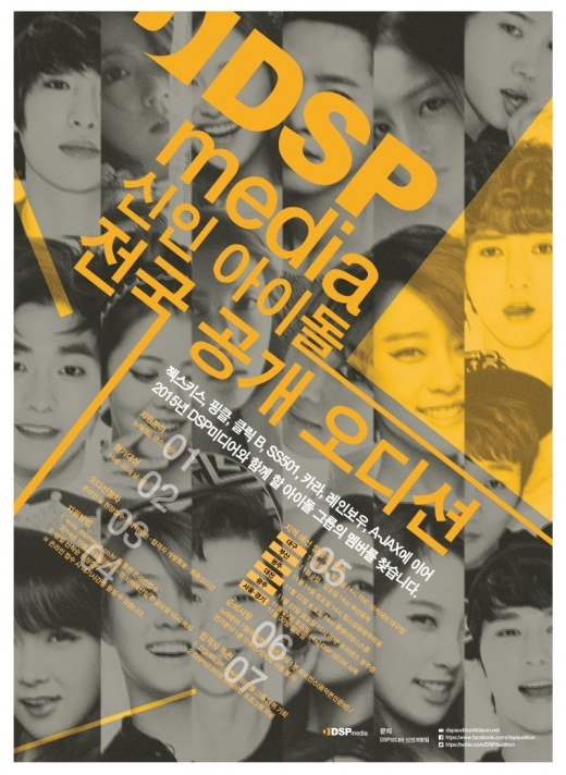 이번 ‘DSP 신인 아이돌 전국 공개 오디션’은 젝스키스, 핑클, 클릭B, SS501, 카라, 레인보우, A-JAX 등을 배출한 ‘아이돌의 명가’ DSP미디어의 미래가 될 인재를 선발하는 공개 오디션으로, 합격자에게는 DSP미디어에서 제공하는 트레이닝 프로그램과 차후 데뷔 예정인 아이돌 그룹 멤버로 기회가 주어진다.