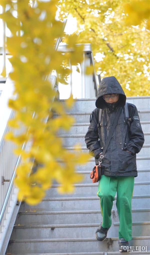 11월 들어 기온이 뚝 떨어지면서 전국 대부분이 초겨울 날씨를 보이는 가운데 4일 서울 미근동 미동초등학교 앞에서 어린이가 겨울 외투를 입고 등굣길을 서두르고 있다. 기상청은 아침엔 복사냉각에 의해 기온이 떨어져 춥겠지만 낮부터 점차 평년기온을 회복할 것으로 예상했다. 신태현 기자 holjjak@