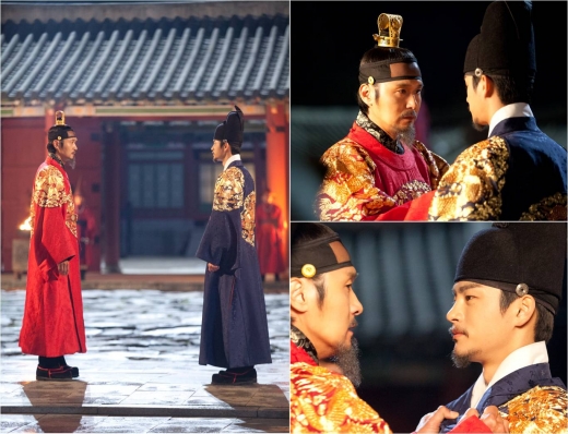 공개된 사진 속에서 서로 마주한 서인국과 이성재는 날카롭게 대립하며 한 치의 양보도 없는 팽팽한 신경전을 벌이고 있다. 이들은 각각 부왕과 세자로 홍룡포와 청룡포를 입고 대치하고 있어 그간 사극에서 볼 수 없었던 극한의 대립각을 세운 부자간 '왕들의 전쟁'을 예고하고 있다.