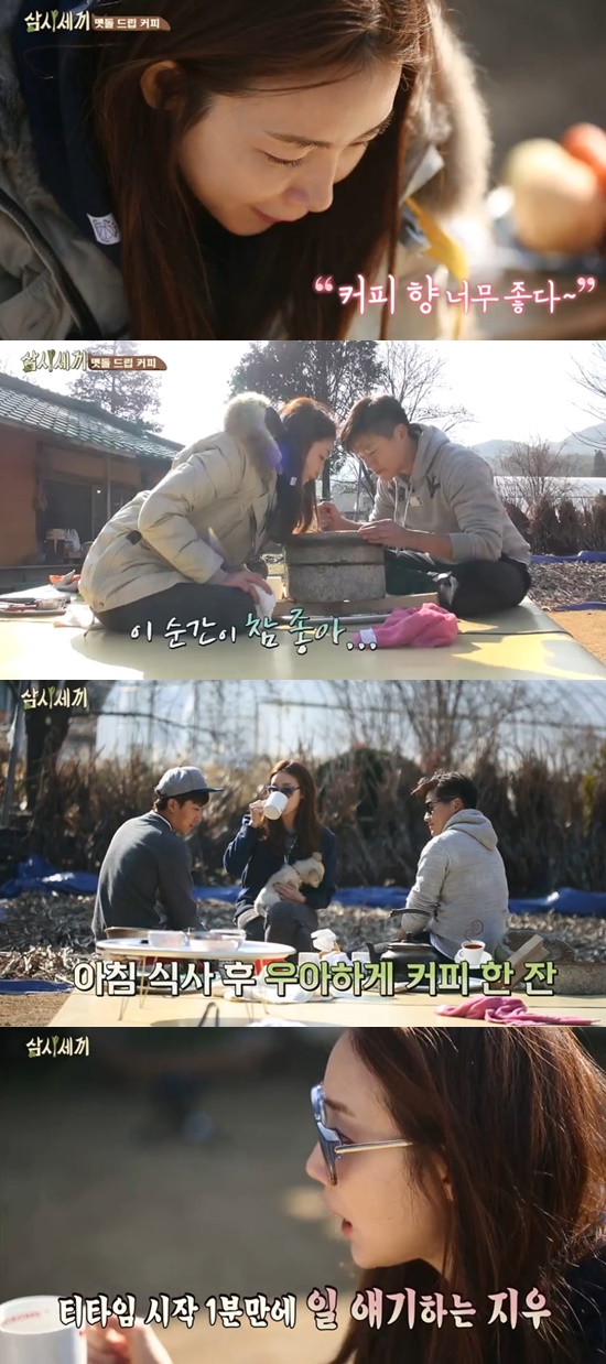 ‘삼시세끼’ 최지우가 이서진과 맷돌에 직접 커피를 만들었다.