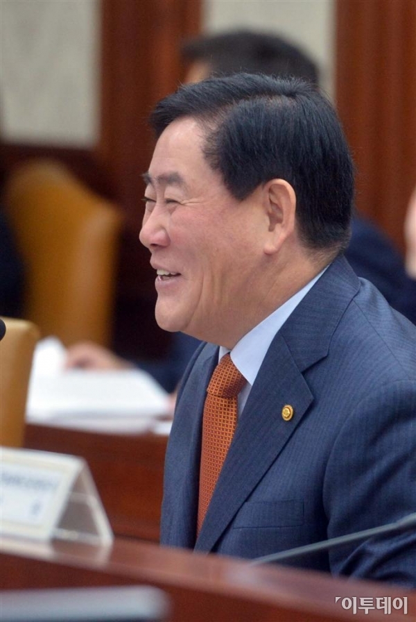 최경환 경제부총리 겸 기획재정부 장관이 31일 서울 세종로 정부서울청사에서 열린 경제관계장관회의 중 웃고 있다. 신태현 기자 holjjak@