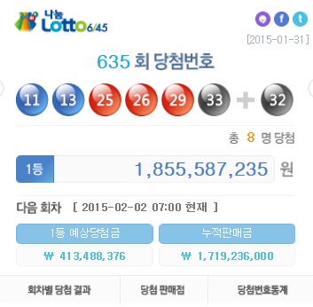 지난달 31일 실시된 제635회 나눔로또 추첨 결과 1등 당첨번호는 '11' '13' '25' '26' '29' '33'으로 결정됐다. 보너스 번호는 '32'다.