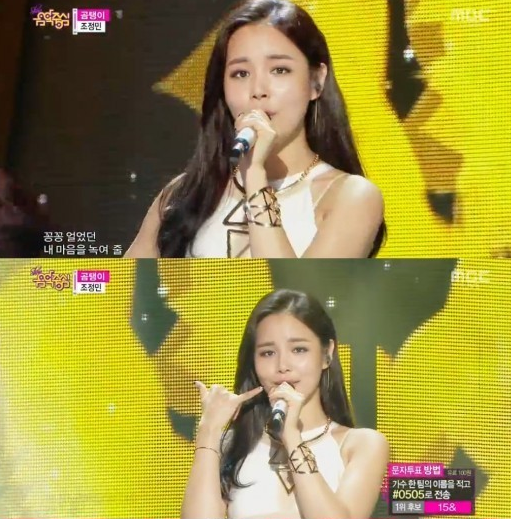 조정민은 21일 방송된 MBC '쇼! 음악중심'에서 '곰탱이'를 열창했다.