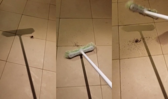 호주 할렛 코브에 사는 대니 포드라는 이름의 남성은 지난 12일 유튜브에 부엌 바닥에 나타난 독거미를 빗자루로 눌러 죽이는 장면을 담은 비디오 영상을 올렸다.