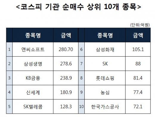 [코스피 기관 순매수 상위 10개 종목]