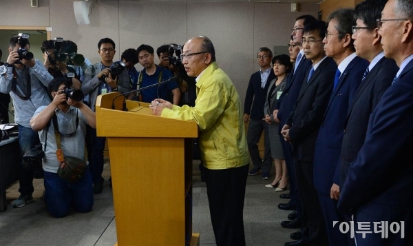 문형표 보건복지부 장관이 31일 오전 서울 종로구 정부서울청사에서 메르스(중동호흡기증후군) 관련 보건의약단체 간담회의 결과와 향후 대책을 발표하고 있다. 노진환 기자 myfixer@