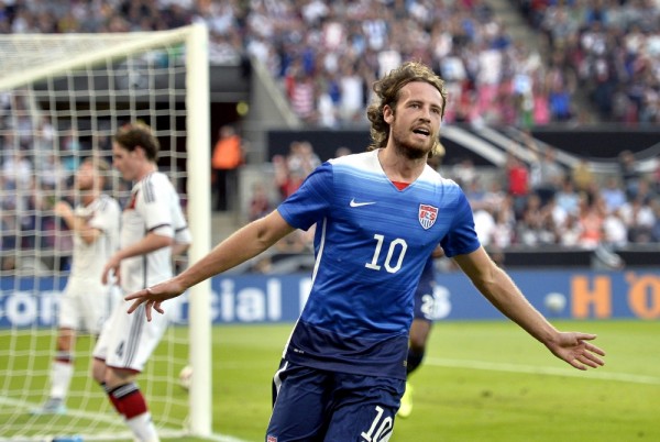 11일 새벽 3시30분(한국시간) 독일 퀼른에서 열린 독일과 미국의 'A매치 친선경기'에서 미국의 믹스 디스커루드가 동점골을 터뜨리고 환호하고 있다. 이날 경기는 미국이 독일을 상대로 역전승을 거두었다.