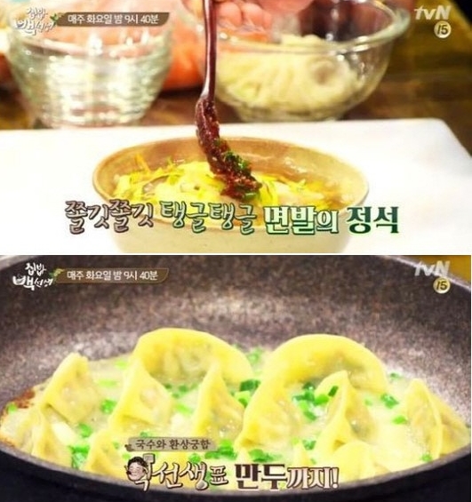 요리연구가 백종원은 30일 방송된 케이블 채널 tvN '집밥 백선생' 7회에서 제자들에게 잔치국수를 맛있게 만드는 레시피와 냉동만두 요리법을 전수했다.