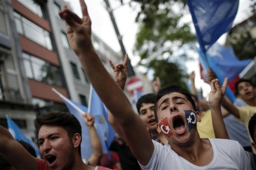 이날 성난 시위자 수백 명이 중국의 통치 하에서 문화와 종교적으로 억압을 받고 있는 위구르족과의 연대를 보여주기 위해 보스포러스 해협 해안에 있는 톱카피 궁으로 행진했다.