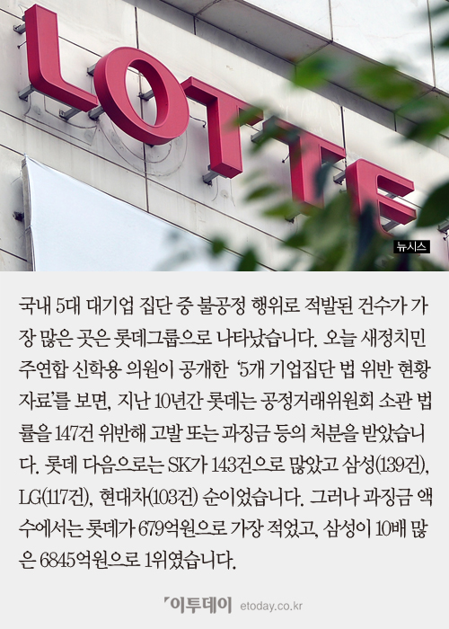 [짤막카드] 롯데 불공정 행위 1위, 법률 위반 147건… 과징금은?