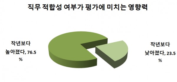 온라인 취업포털 사람인(www.saramin.co.kr)이 기업 260개사를 대상으로 조사한 결과 76.5%가 직무 적합성 평가의 영향력이 작년보다 높아졌다고 답했다고 10일 밝혔다.