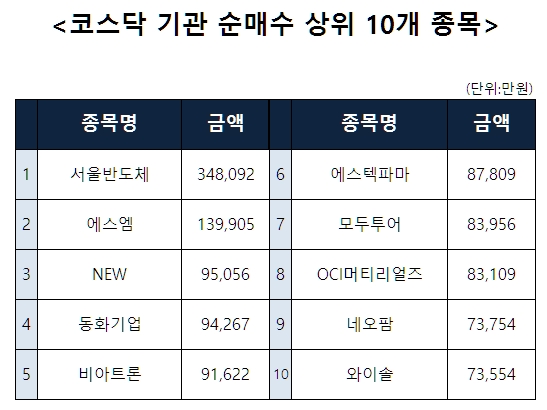 [코스닥 기관 순매수 상위 10개 종목]