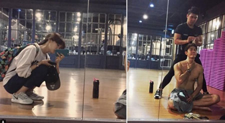 공개된 사진 속에는 헬스장 전신거울에 카메라를 대고 셀카를 찍고 있는 이청아의 모습이 담겨 있다. 이기우 역시 같은 배경을 뒤로 하고, 근육질의 상의를 탈의한 채 거울을 응시하는 모습이다.