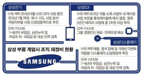 삼성 부품 계열사의 체질개선 작업이 한창입니다. 경쟁력이 낮은 사업은 떼고, 주력 사업 거래처는 확대하며, 수익성 중심의 조직으로 탈바꿈하고 있습니다. 조직 슬림화 작업이 막바지에 다다르면서 부품 계열사 간, 또 삼성전자와의 추후 통합 작업 여부에 관심이 모아지고 있습니다.