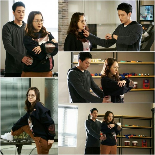 소지섭은 시크하지만 진지한 표정으로 신민아의 허리를 살포시 잡고 있고, 신민아는 소지섭의 손이 은근 신경 쓰이면서도 비지땀을 흘리며 운동에 매진하고 있다.