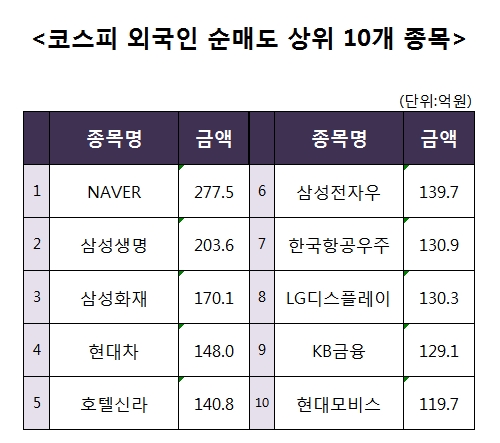 [코스피 외국인 순매도 상위 10개 종목]