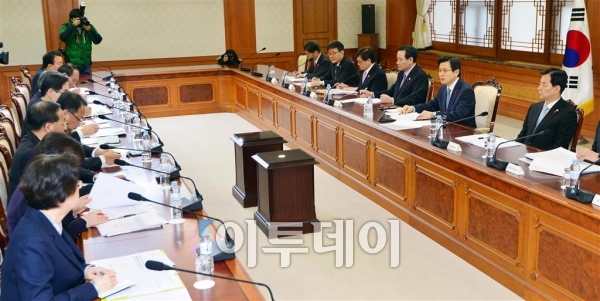 황교안 국무총리가 28일 서울 세종로 정부서울청사에서 열린 국가정책조정회의에 참석해 모두발언을 하고 있다. 신태현 기자 holjjak@