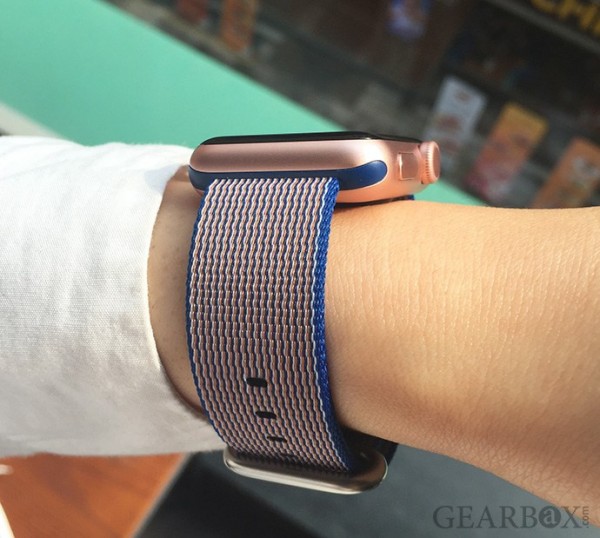 새로운 밴드가 나왔으면 내가 제일 먼저 착용해 봐야지. 로즈 골드 애플 워치에 로열 블루 우븐 나일론 밴드를 매치했다.