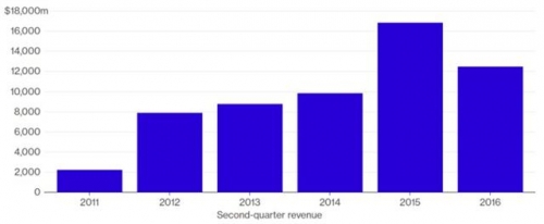 2분기 아이폰 판매 대수는 전년 동기 대비 16% 감소한 5119만대였다. 팀 쿡 최고경영자(CEO)는 “‘아이폰6s’로 업데이트 속도는 ‘아이폰6’ 때에 비해 낮다”고 설명했다. 아이폰 뿐만 아니라 애플의 다른 제품 판매 실적에서도 중국발 세계 경제 둔화의 영향은 선명하게 나타났다. PC ‘Mac’은 12% 감소한 403만대였고, 태블릿 PC ‘아이패드’는 부진이 계속되면서 전년보다 19% 감소한 1025만대를 파는 데 그쳤다.