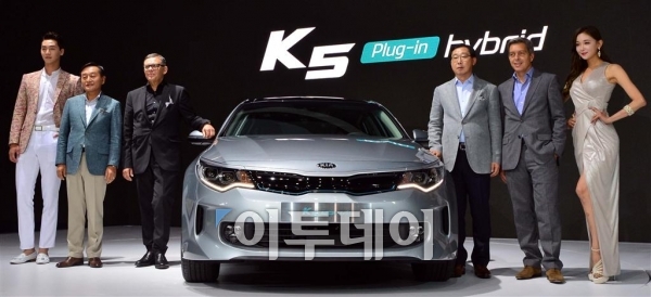 ‘2016 부산국제모터쇼’ 프레스데이가 2일 부산 우동 벡스코에서 열린 가운데 기아차가 부스에서 세계최초로 ‘K5 하이브리드’를 선보이고 있다. 오는 3일 공식 개막을 시작으로 12일 까지 열리는 부산국제모터쇼에선 ‘미래의 물결, 감동의 기술’을 주제로 현대·기아차를 비롯한 국산차 7개 브랜드와 수입차 브랜드 18곳 등 모두 25개 완성차 업체가 참여, 신차 46종 등 역대 최대인 차량 232종의 디자인과 기술력을 뽐낸다. 신태현 기자 holjjak@