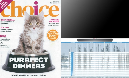 19일 LG전자에 따르면 호주의 대표적인 월간 소비자 매거진인 초이스(choice)가 최근 실시한 TV 성능평가에서 LG 올레드 TV 3종이 각각 78점(모델명: 55EG910T), 73점(모델명: 55EG960T), 71점(모델명: 55EF950T)으로 나란히 1~3위를 차지했다.