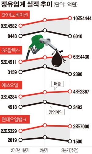 이에 따라 정유사들은 상반기에는 못 미치나 3분기에 수천억 원 이상의 영업이익을 올릴 것으로 전망된다. 증권업계에 따르면 SK이노베이션의 3분기 실적 컨센서스는 매출 10조4444억 원, 영업이익 6010억 원이다. 1~2분기 1조 원 안팎의 영업이익보다는 밑돌지만, 작년 3분기 영업이익 3639억 원보다 많다. 또 GS칼텍스와 에쓰오일, 현대오일뱅크 역시 1000억~4000억 원의 영업이익 달성이 예상되고 있다.