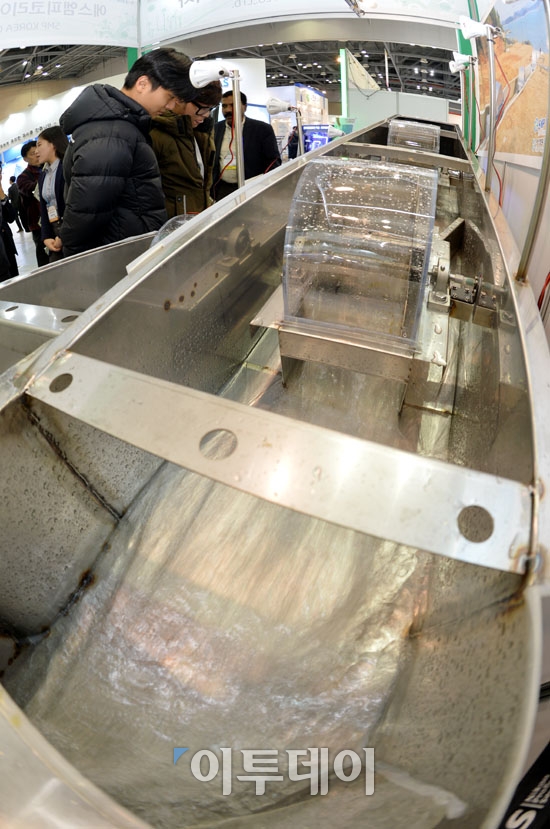 2016대한민국 에너지대전이 8일 경기 고양시 킨텍스에서 열린 가운데 방문객들이 소수력발전시설을 둘러보고 있다. 이번 행사는 신재생에너지와 에너지 효율 관련 분야 270여개 기업이 참가, 오는 11일까지 열린다. 최유진 기자 strongman55@