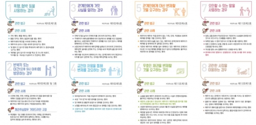 사례에는 △폭행 및 협박 등을 사용하는 경우 △관계인에게 거짓 사실을 알리는 경우 △관계인에게 대신 변제할 것을 요구하는 경우 △오인할 수 있는 말을 사용하는 경우 △반복적 또는 야간(오후 9시 이후)에 방문하는 경우 등이 있다.