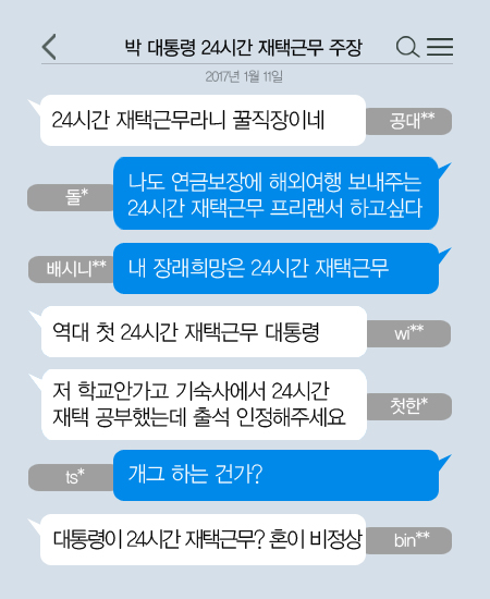 10일 박근혜 대통령 측이 헌법재판소에 제출한 '세월호 7시간' 내용과 관련 네티즌들의 비난이 이어지고 있습니다. 박 대통령 대리인은 이 자료에서 "대통령의 일상은 출퇴근의 개념이 아닌 24시간 재택근무 체제"라고 밝혔습니다. 대통령 측은 "청와대는 어디서든 보고를 받고 지시, 결재할 수 있는 시스템이 구축되어 있다"며 "세월호 참사 당일에는 관저 집무실을 이용한 것"이라고 전했습니다. "김대중 전 대통령과 노무현 전 대통령도 관저에서 업무를 많이 봤다"며 "박 대통령에게는 관저가 '제2의 본관'"이라고 강조하기도 했죠. 한편 헌재는 대리인단이 제출한 자료가 허술하다고 지적하며 당일 행적을 좀 더 구체적으로 밝히라고 요구했습니다. 박 대통령의 24시간 재택근무 주장에 네티즌들은 "나도 연금보장에 해외여행까지 보내주는 24시간 재택근무 프리랜서 하고 싶다", "개그 하는 건가?", "역대 첫 24시간 재택근무 대통령" 등의 반응을 보이고 있습니다.