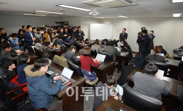 반기문 총장 측 이도운 대변인이 11일 서울 마포트라펠리스에서 첫 기자간담회를 열고 반 총장 일정을 설명하고 있다. 반 총장은 오는 12일 인천공항을 통해 귀국하며 서울 사당동 자택까지 승용차로 이동할 예정이다. 고이란 기자 photoeran@