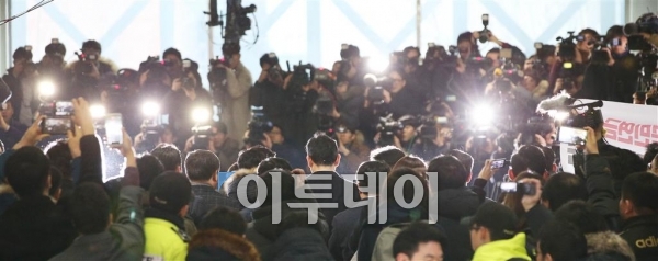 이재용 삼성전자 부회장이 12일 오전 서울 대치동 박영수특별검사 사무실에 피의자신분으로 출석하고 있다. 이 부회장은 최순실 일가에 대한 지원의혹과 관련해 뇌물공여 혐의를 받고 있다. 이동근 기자 foto@