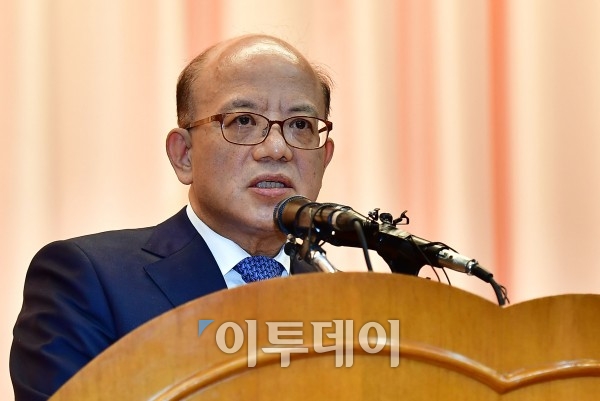 6년의 재판관 임기를 모두 채운 박한철 헌법재판소장이 31일 서울 종로구 헌법재판소에서 열린 퇴임식에 참석해 퇴임사를 하고 있다. 이동근 기자 foto@