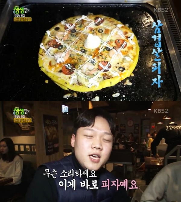 7일 오후 방송된 KBS '2TV 생생정보'에서는 삼겹살 피자 맛집이 소개됐다. 삼겹살 피자란 도우 대신 잘 구운 삼겹살에 피자 토핑과 치즈를 얹어 만든 색다른 음식이다.