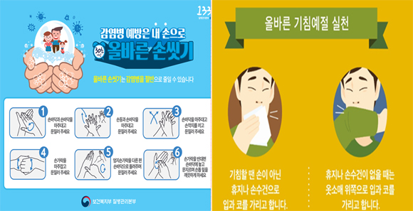 손을 씻을 때는 비누를 사용해 30초 이상 씻도록 하고 기침, 재채기를 할 때는 손수건이나 휴지, 옷깃으로 입을 가리는 기침 예절을 지켜야 한다.