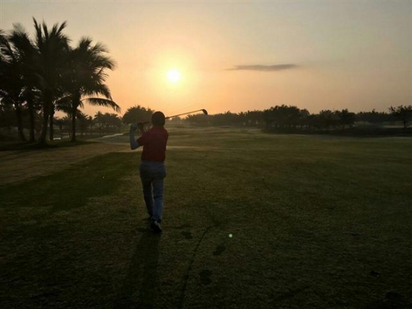 석양의 그린 위에서 모자를 벗고 고개숙여 감사기도를 드립니다. 강인하고 건강한 몸을 주신 부모님께 감사드리며 다시 고개를 숙입니다 . 마치 밀레의 만종을 연상시키는 모습으로...