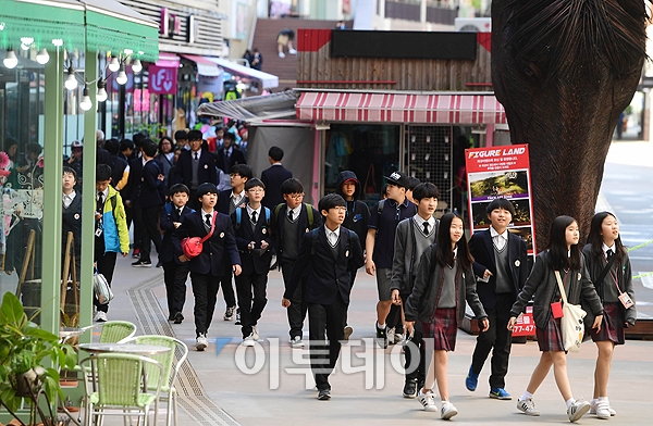 2017 고양시 청소년 진로체험 페스티발이 26일 경기 고양시 일산서구 원마운트에서 열린 가운데 상가주변이 직업체험을 희망하는 학생들로 북적이고 있다. 이번 행사는 오는 28일까지 열리며 학생들의 직업체험을 위해 16개 상가가 사업장을 개방했다. 고이란 기자 photoeran@