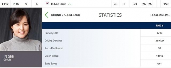 장하나와 김세영도 각각 7오버파 149타와 6오버파 148타로 3라운드 진출에 실패했다.