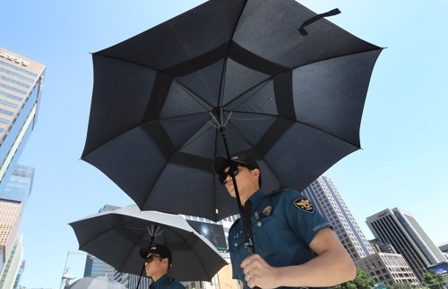 반소매 또는 민소매 차림의 시민들은 선글라스를 끼거나 양산을 펼쳐 뜨거운 햇볕을 피했다. 시원한 아이스커피나 음료, 빙과 등으로 더위를 식히는 사람들도 많았다.