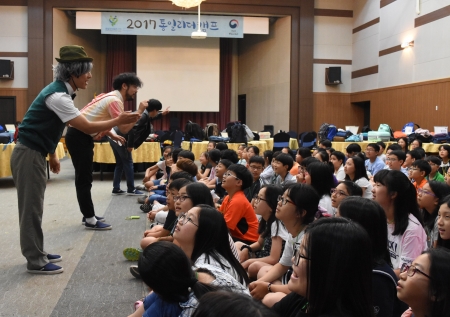 통일부 통일교육원은 수도권 남부지역 초•중등생을 대상으로 진행한 ‘2017 통일리더캠프'를 성황리에 마무리했다고 26일 밝혔다. 이번 캠프는 20일~21일 중등생 115명과 22일~23일 초등생 124명 등 총 239명이 참석했으며, 장소는 서울 국제청소년센터에서 열렸다.