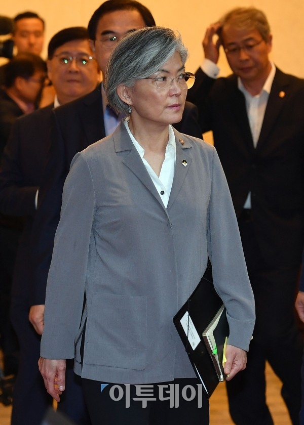 강경화 외교부 장관이 4일 오전 서울 종로구 정부서울청사에서 열린 국무회의에 참석하기 위해 입장하고 있다. 이동근 기자 foto@