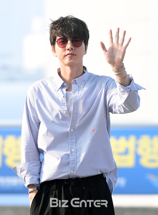 배우 박해진이 14일 오전 팬미팅 참석차 인천국제공항을 통해 태국 방콕으로 출국하며 손인사를 하고 있다.