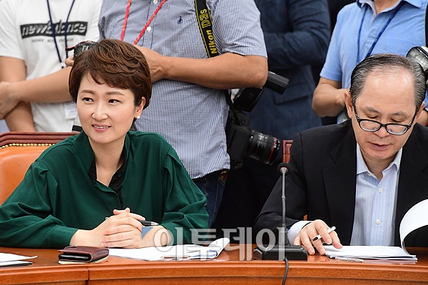 이언주 국민의당 원내수석부대표(왼쪽)가 28일 오전 서울 여의도 국회에서 제26차 비상대책위원회의 시작 전 미소짓고 있다. 고이란 기자 photoeran@
