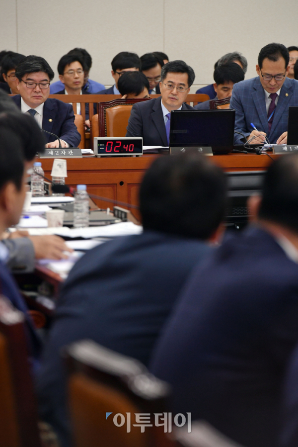 김동연 경제부총리 겸 기획재정부 장관이 28일 서울 여의도 국회에서 열린 기획재정위 전체회의에서 질의에 답하고 있다. 이동근 기자 foto@