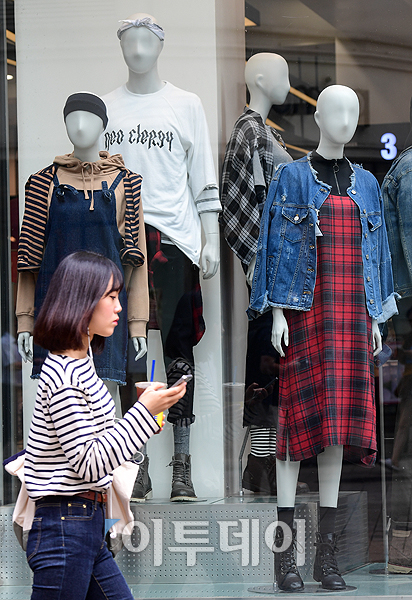 전국적으로 흐린 날씨를 보인 28일 서울 명동거리의 한 의류매장에 가을 옷이 걸려있다. 기상청은 밤 사이 전국적으로 비가 내리다 내일 오전 그친 뒤 한동안 맑고 쾌청한 초가을 날씨가 이어질 것으로 전망했다. 고이란 기자 photoeran@