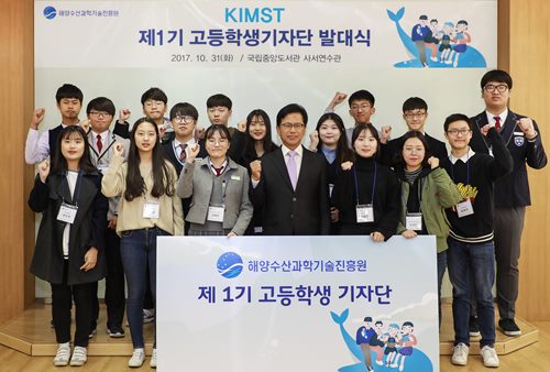 ▲사진=해양수산과학기술진흥원은 다양한 해양수산과학기술 정책과 연구개발(R&D) 소식을 청소년의 시각으로 새롭게 전해줄 ‘제1기 KIMST 고등학생 기자단 발대식’을 31일 국립중앙박물관에서 개최했다.(사진 중앙=연영진 해양수사과학기술진흥원장)