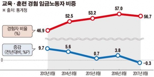 임금노동자의 교육·훈련 비율이 줄어든 것은 관련 통계가 집계되기 시작한 2007년 이후 처음이다.