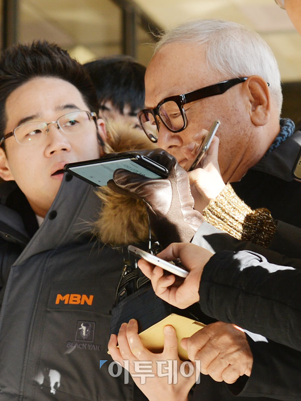 이병호 전 국정원장이 19일 오후 입을 굳게 다문 채 서울중앙지검으로 들어서고 있다. 이 전 국정원장은 박근혜 정부 시절 국가정보원 특수활동비를 청와대에 상납한 혐의를 받고 있지만 지난 17일 구속영장이 기각됐다. 최유진 기자 strongman55@